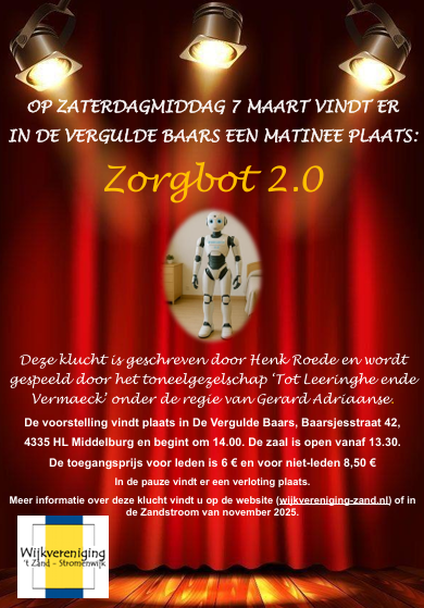 Op zaterdagmiddag 7 maart wordt het toneelstuk Zorgbot 2.0 opgevoerd.